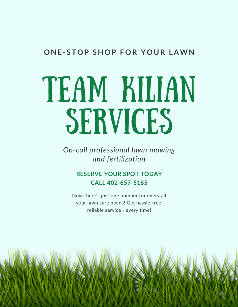🌿 Team Kilian Services is your one-stop shop for professional lawn mowing and fertilization—on call, reliable, every time.